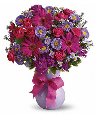 If you're looking for a way to show your loved ones how much you care, consider Teleflora's Joyful Jubilee bouquet. This arrangement is aptly named, as it is sure to bring happiness and delight to those you hold dear. Featuring hot pink spray roses and gerberas, as well as Sweet William in a darker [...]